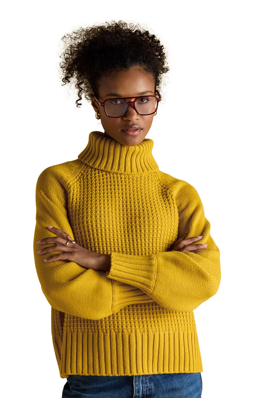 The ladies Joules Cary detachable roll neck jumper offers versatile two-ways styling with chunky wool-blend fabric and textured knit details.