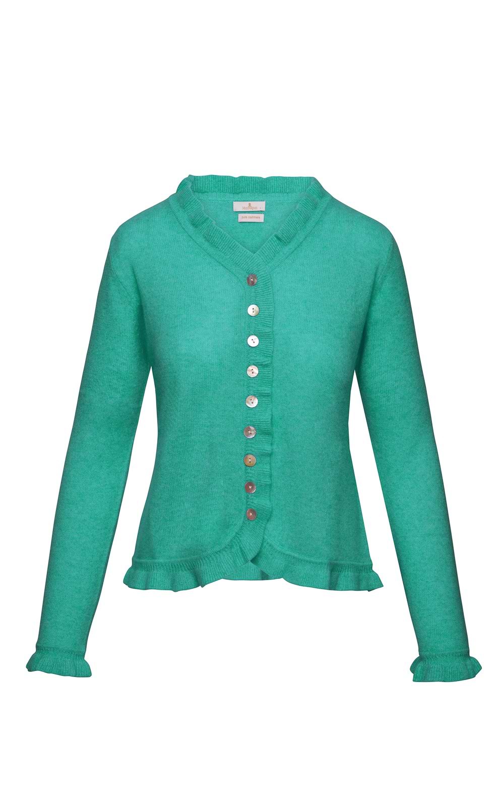 With its soft texture and playful frills, this ladies cashmere cardigan adds a little extra joy to your layering line-up without ever feeling too fussy.