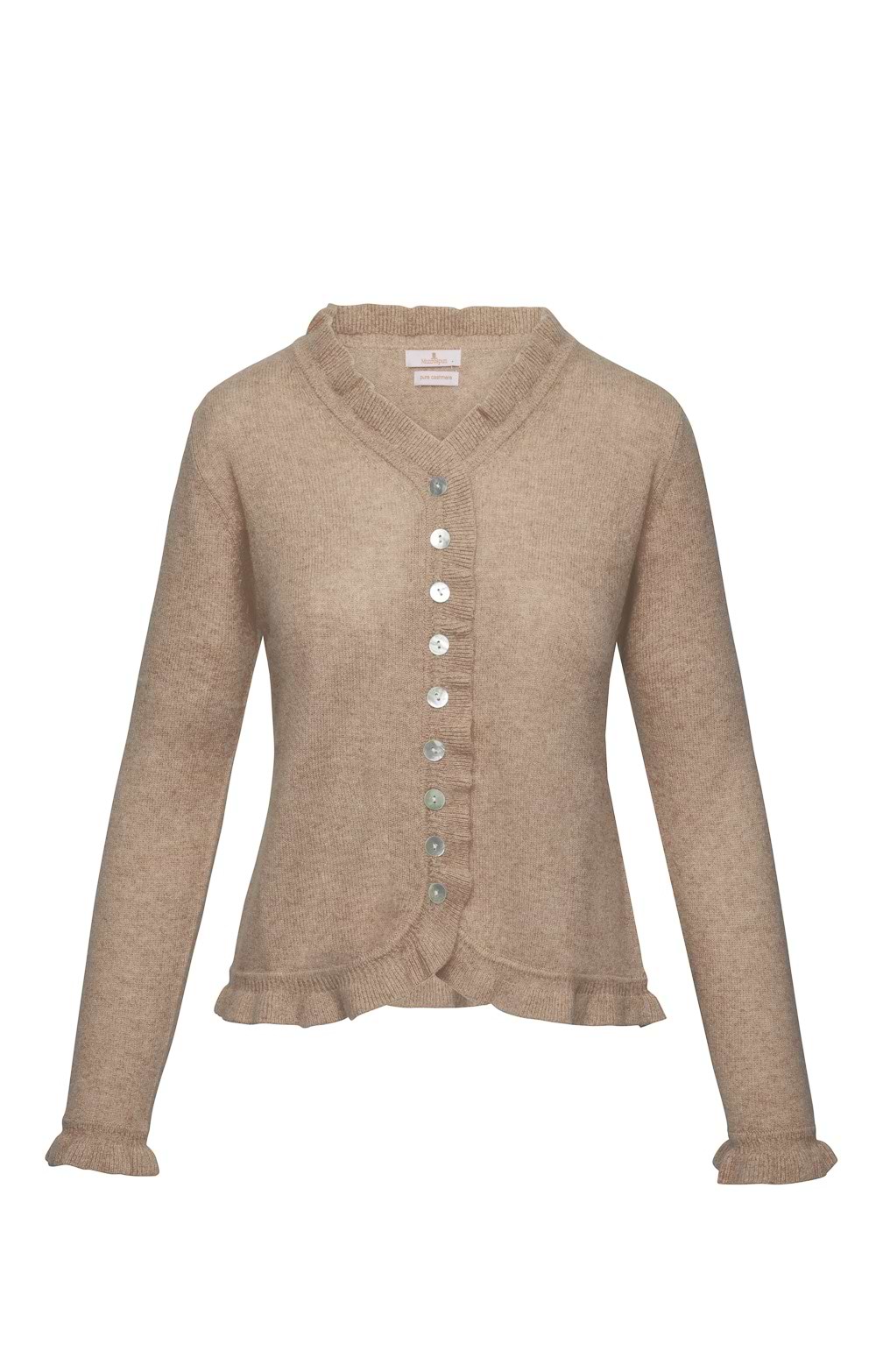 With its soft texture and playful frills, this ladies cashmere cardigan adds a little extra joy to your layering line-up without ever feeling too fussy.