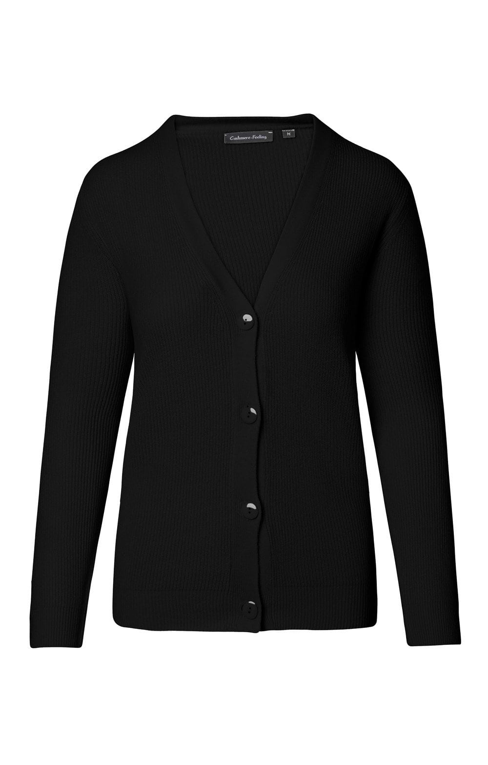 Ladies Cashmere Like Ribbed V-Neck Cardigan