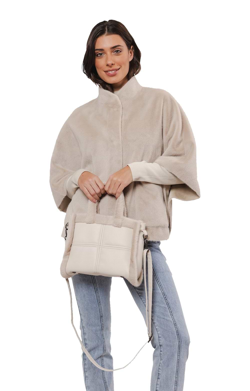Ladies Rino & Pelle Leather Faux Fur Trim Bag