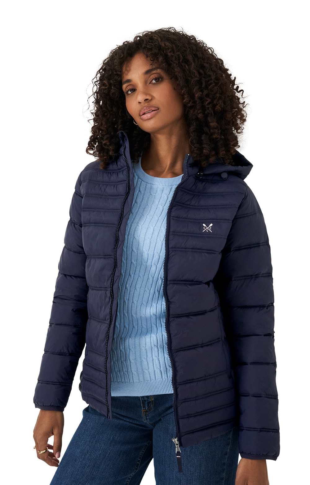 The ladies Crew Clothing lightweight padded jacket provides warmth without weight, with a cosy neckline and versatile removable hood.