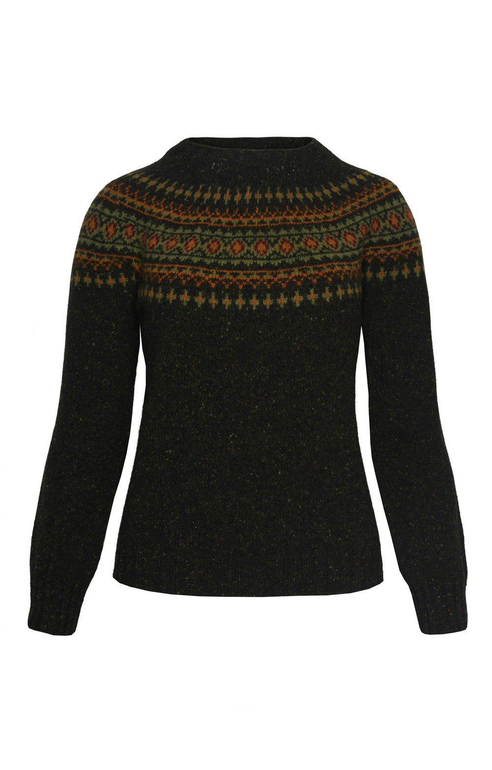 Scottish knitted jumper in soft flecked lambswoolFairisle designRelaxed fitRelaxed double-ribbed necklineEnjoy wearing this wonderful jumper with your favourite moleskin jeans, cord skirts or denims, adding leather boots and a tweed jacket for a covetable country look.
