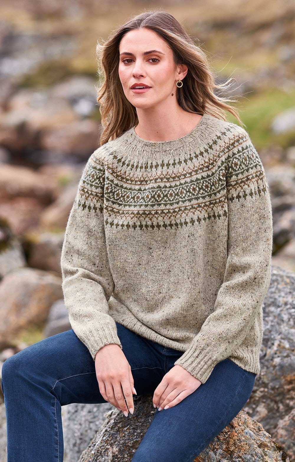 Scottish knitted jumper in soft flecked lambswoolFairisle designRelaxed fitRelaxed double-ribbed necklineEnjoy wearing this wonderful jumper with your favourite moleskin jeans, cord skirts or denims, adding leather boots and a tweed jacket for a covetable country look.