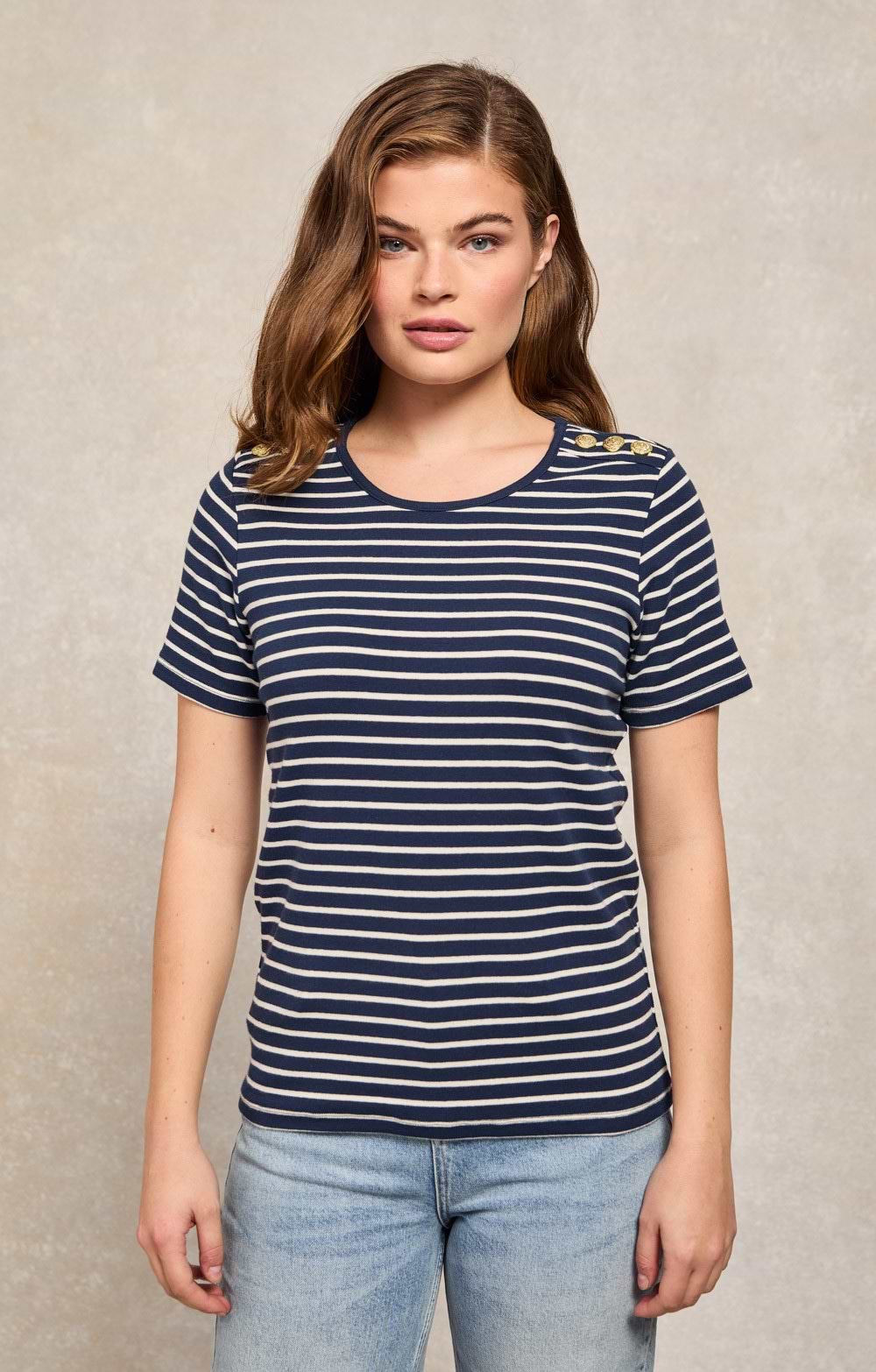 A wardrobe staple, the ladies Padstow crew neck tee is crafted from ultra-soft fabric, featuring a relaxed fit and Holland Cooper shoulder branding.