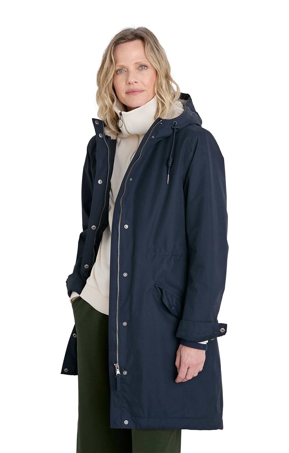 The soft fleecy lining in the upper body and hood, with recycled wadding elsewhere for snugness, coupled with a drawstring waist and parka-style hem for extra coverage provide a practical and stylish coat that you'll love to throw on when braving the elements.