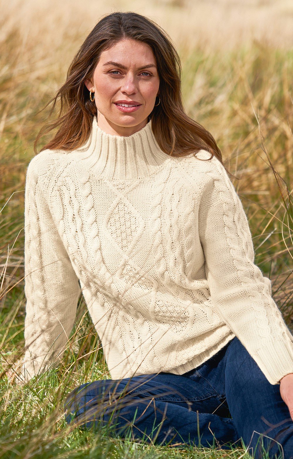 Ladies Aran Funnel Neck
