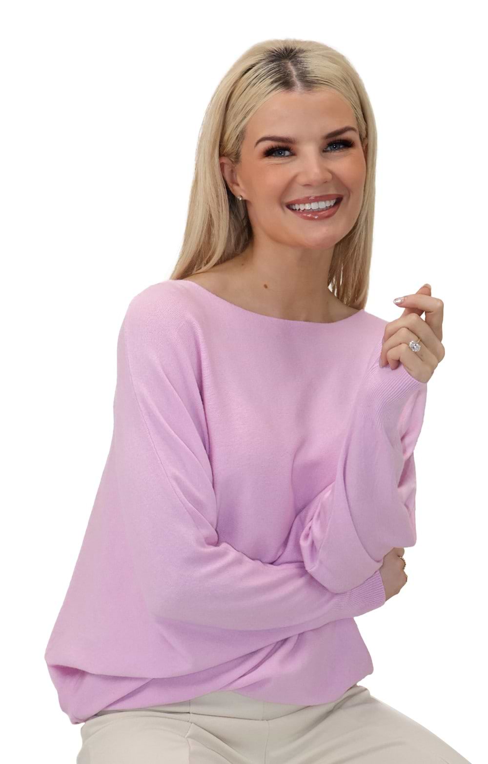 Ladies Pearl Back Batwing Knit Top