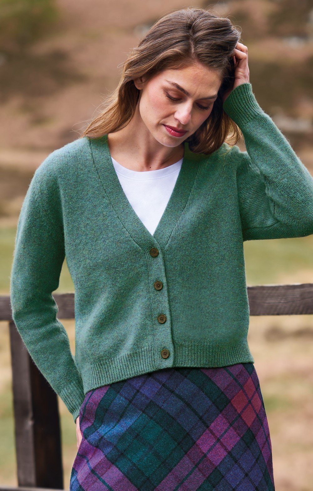 Ladies Cropped Shetland Wool V Neck Cardigan