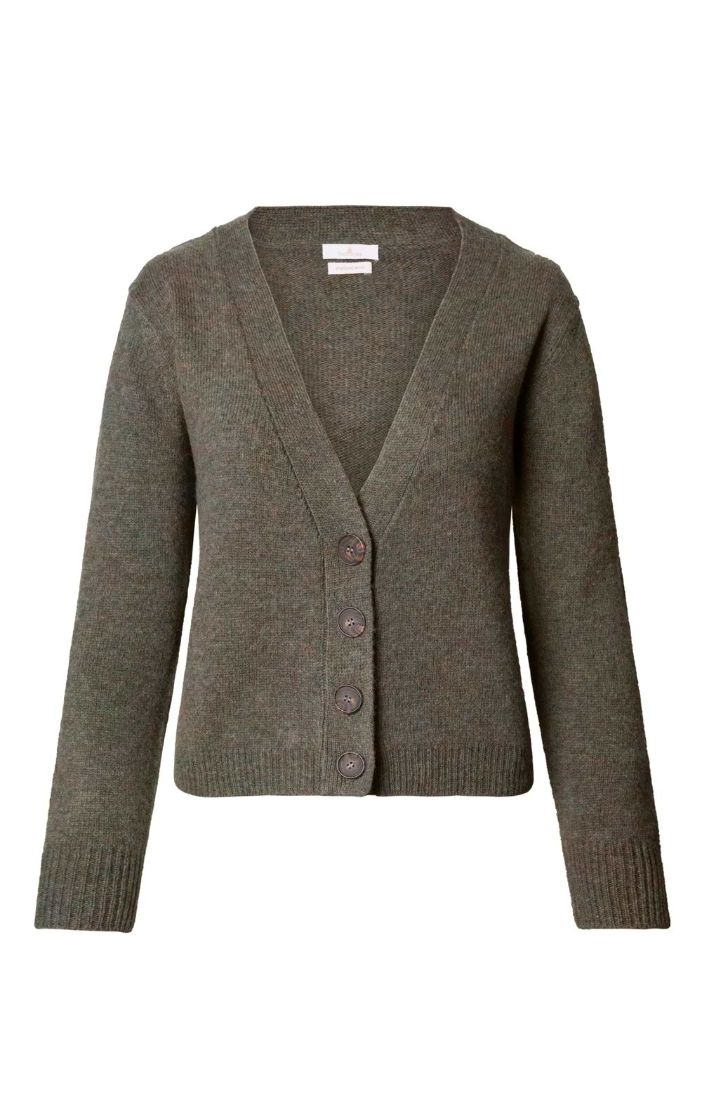 Ladies Cropped Shetland Wool V Neck Cardigan