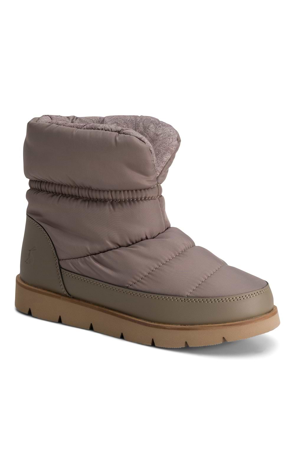 Deeply quilted space boots with robust soles.Elasticated collar with notch for easy access.Debossed Joules branding to heel.Enjoy wearing these fabulous boots with your favourite puffer coat, and make the most of the cold and snow!