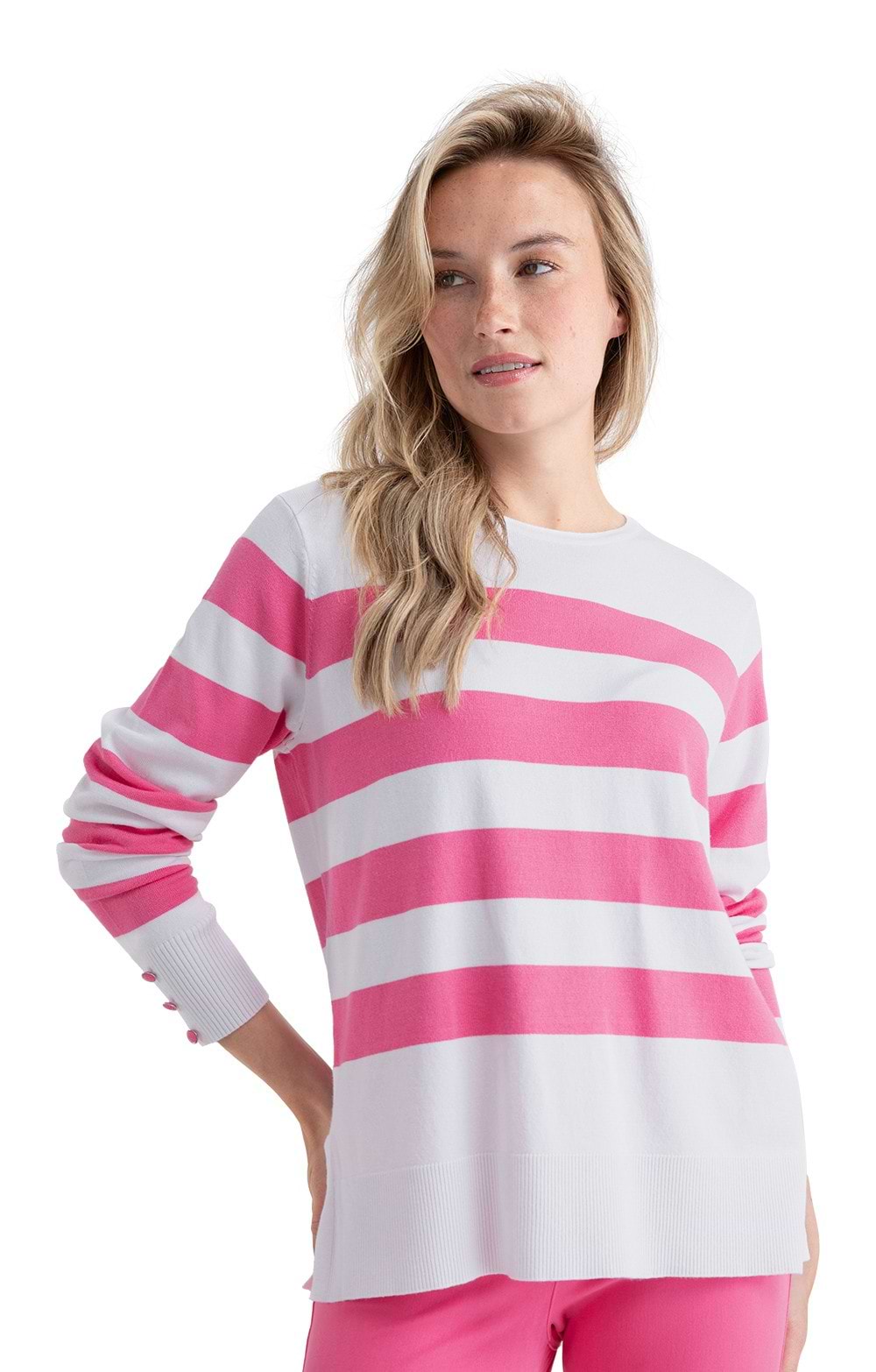 Update your style with the ladies Marble split side stripe sweater, a chic addition to your wardrobe.