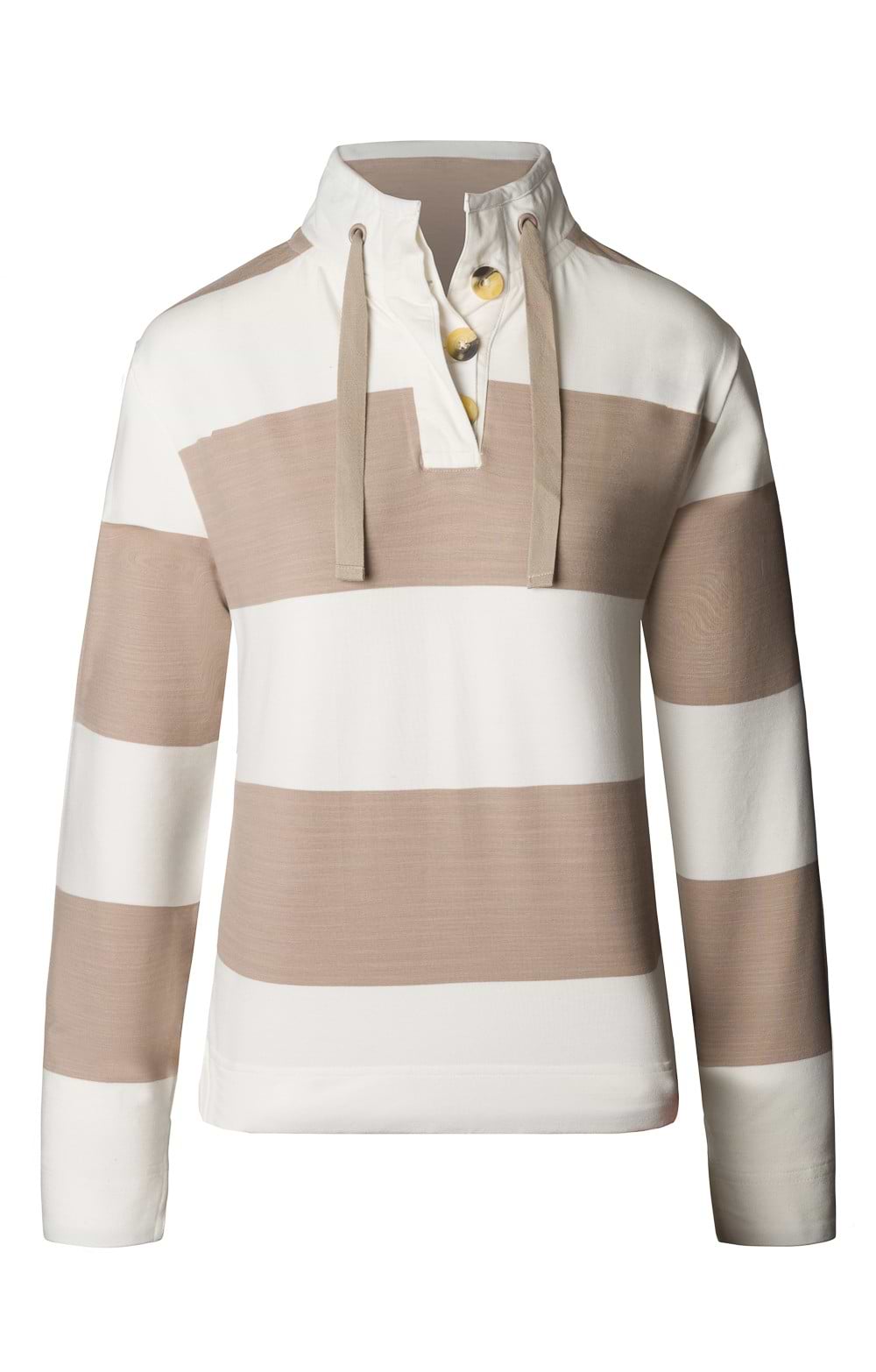 Ladies Stretch Cotton Button Neck Stripe Sweatshirt