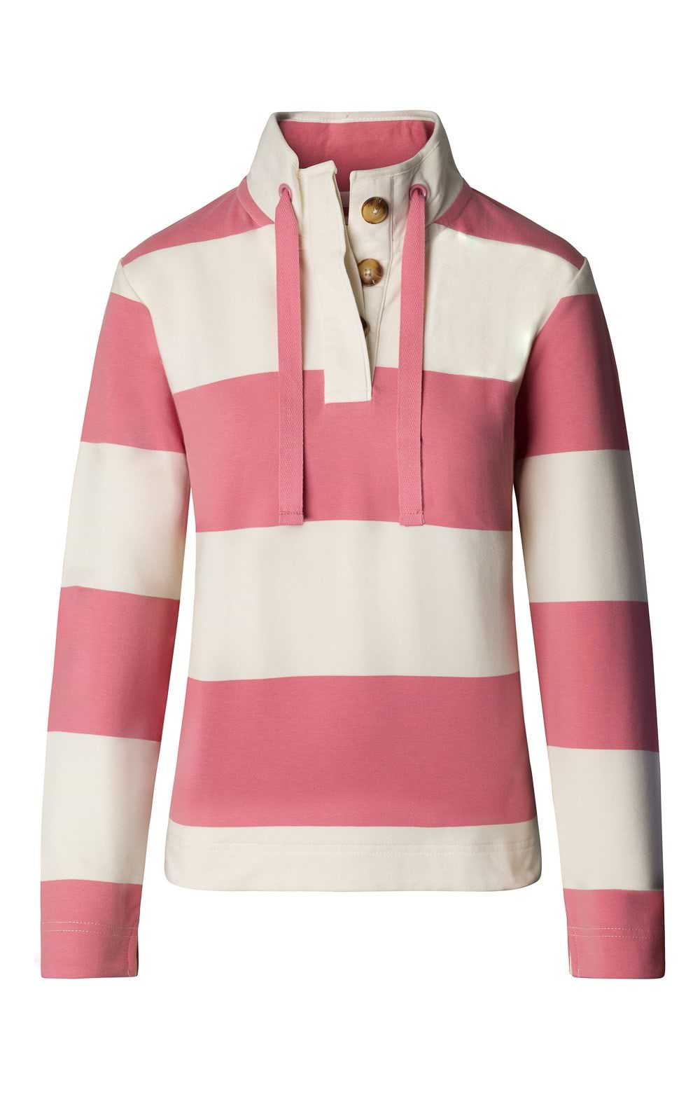 Ladies Stretch Cotton Button Neck Stripe Sweatshirt