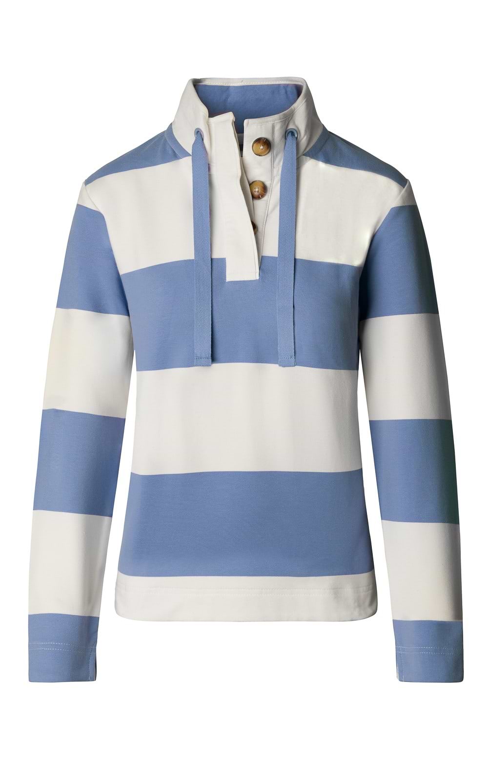 Ladies Stretch Cotton Button Neck Stripe Sweatshirt