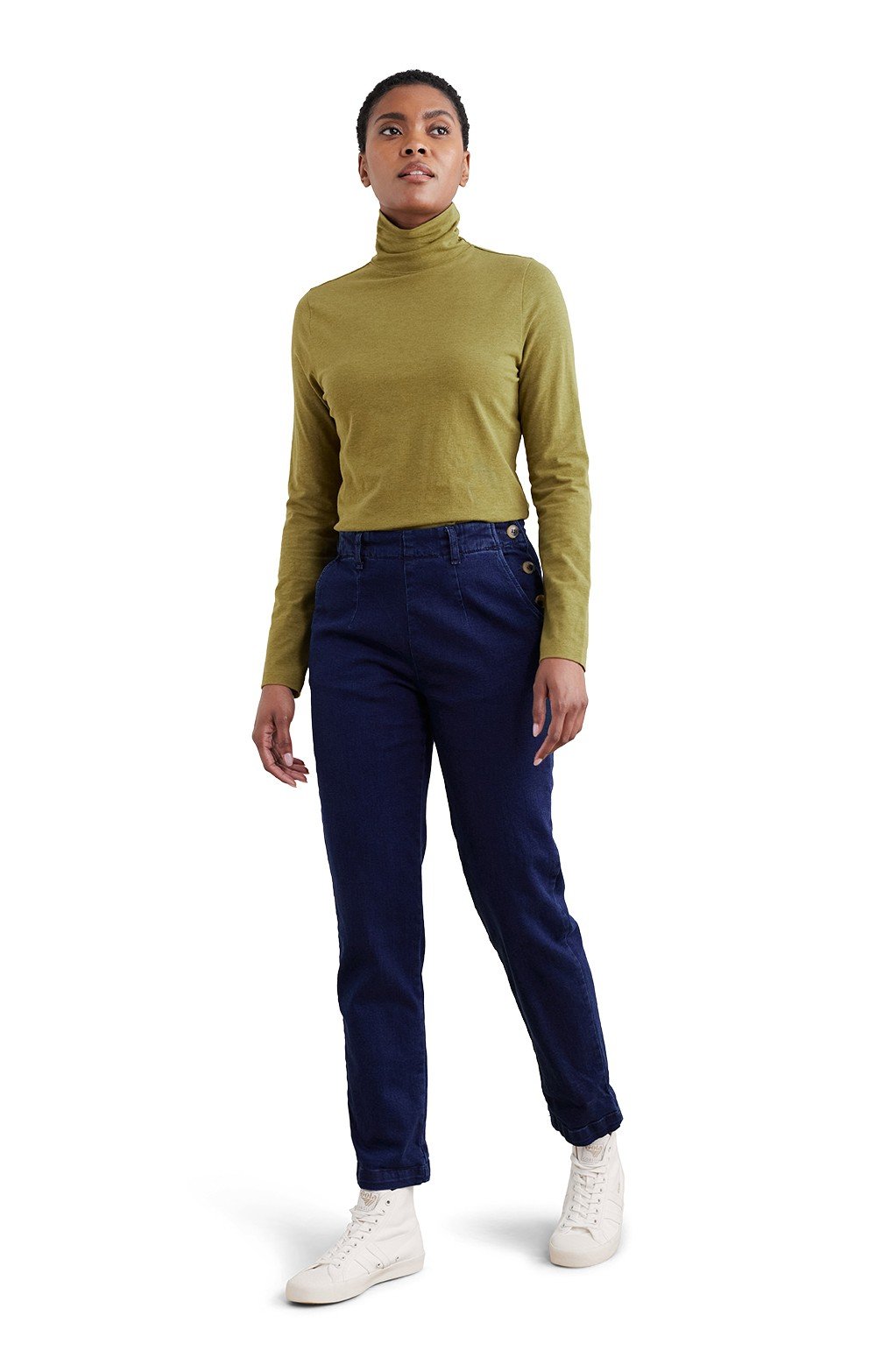 Tapered leg.Sitting just below the natural waist.Curved side front pockets.Back patch pockets.Button fastening.Belt loops.Partner with tees and loafers for a relaxed vibe or court shoes and chiffon blouse for a look that speaks sheer sophistication.