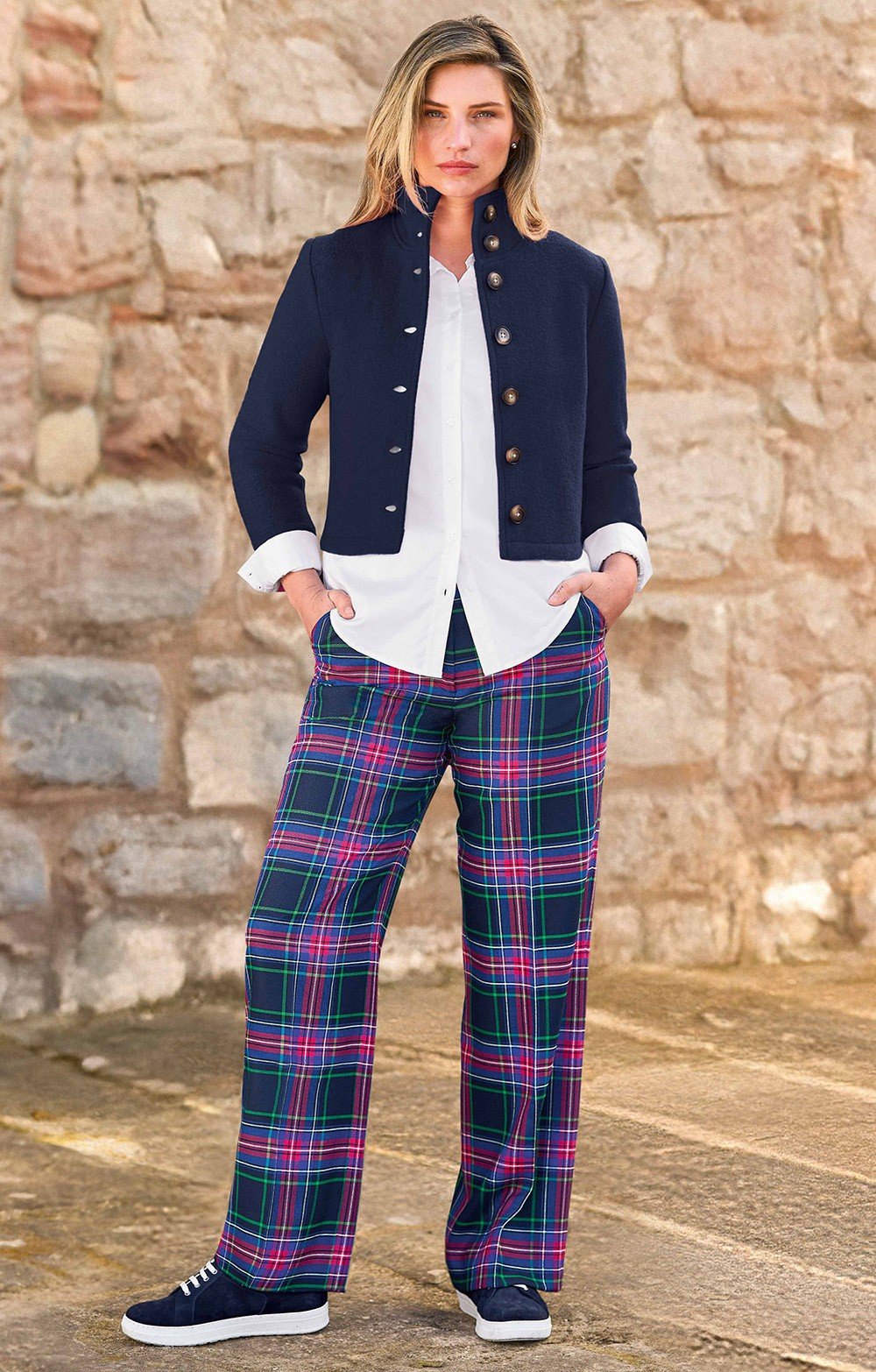 The high waist not only defines the waistline but also creates the illusion of longer, leaner legs, contributing to an elegant and polished appearance. The bold tartan pattern, rich in Scottish heritage, brings a distinctive touch to your wardrobe, smoothly transitioning through the seasons. These trousers pair seamlessly with neutral or solid-coloured tops, allowing the vibrant tartan to take centre stage without overwhelming the ensemble. Whether you're preparing for a leisurely outing or a more formal affair, these trousers adapt with ease, allowing for a multitude of styling possibilities.