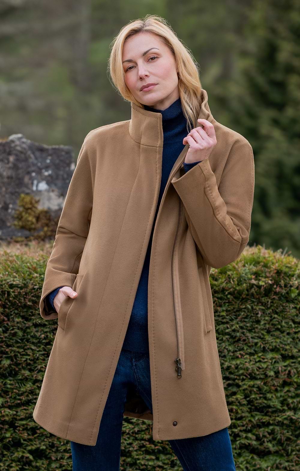 Ladies Wool Cashmere Zip Coat