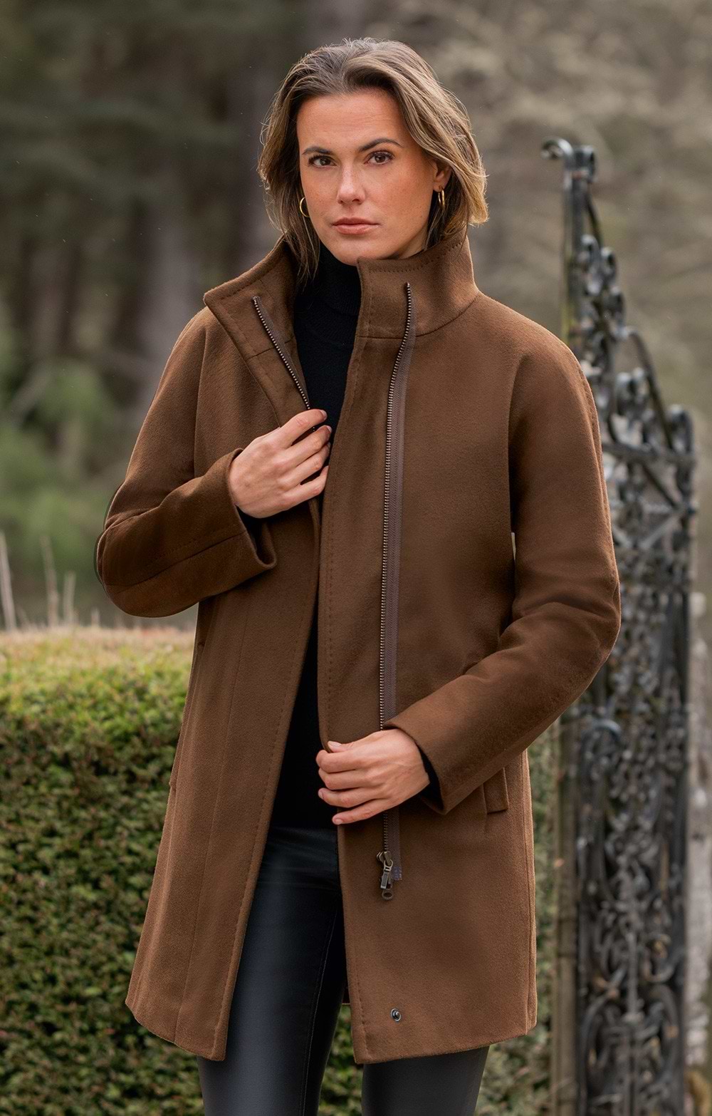 Ladies Wool Cashmere Zip Coat
