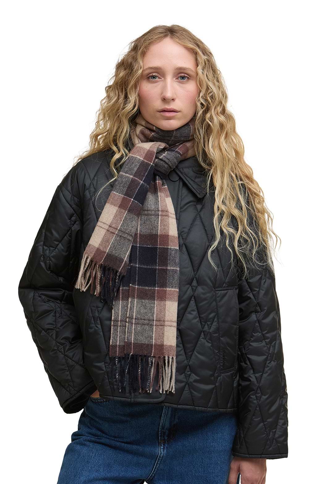 The ladies Barbour tartan scarf combines luxurious lambswool and cashmere in a classic tartan pattern for versatile styling.