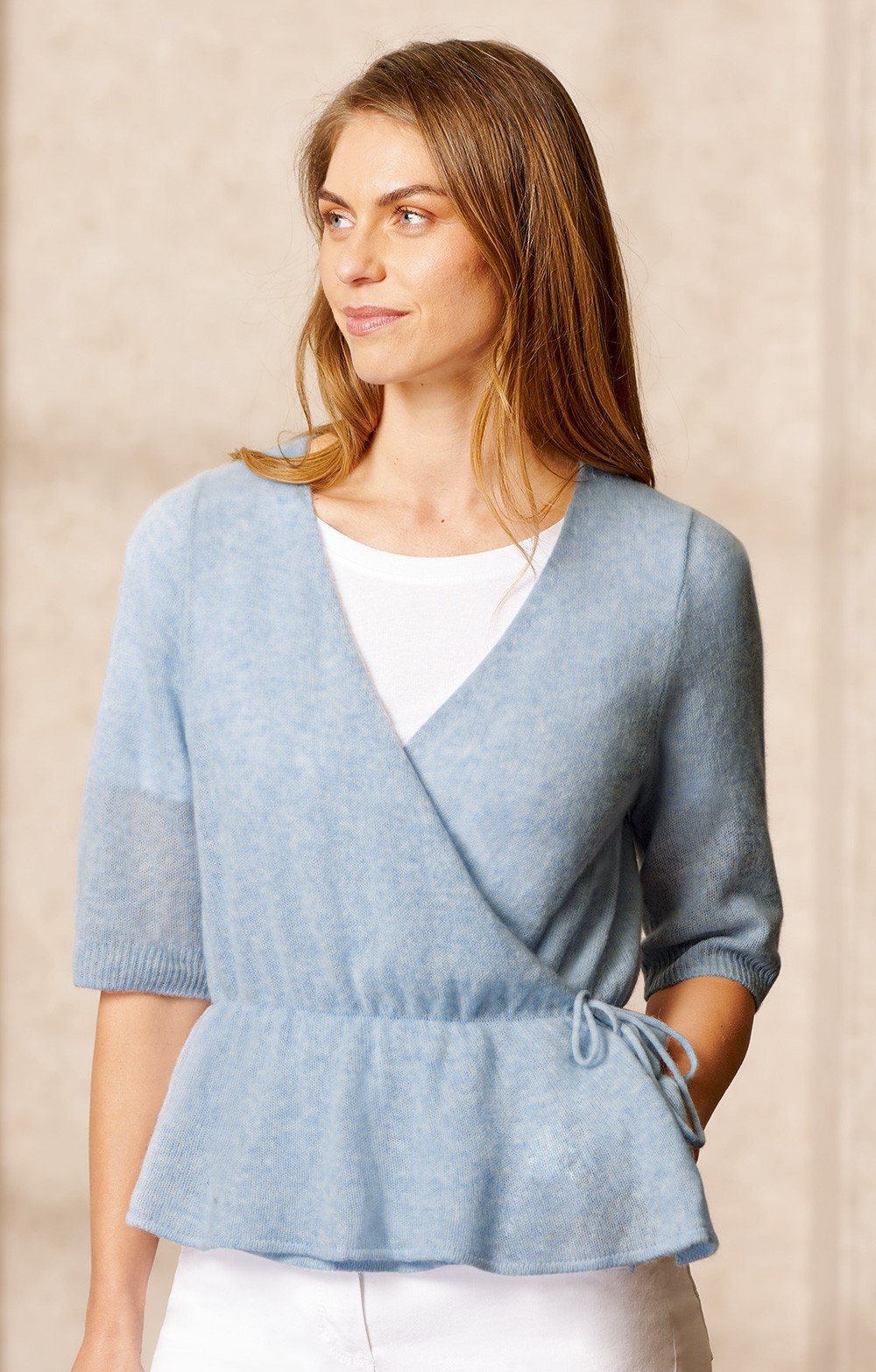 Wrap style knitted top in pure cashmereGathered waist with tie featureFloaty ruffles over hipsHalf sleeves with ribbed edgeGauzy semi-sheer knit perfect for layeringDesigned by The House of BruarLayer over a crisp white shirt and your favourite chinos and jeans for lunch with girlfriends, or over a cami top and your favourite necklace for an evening dinner look – the options are endless.
