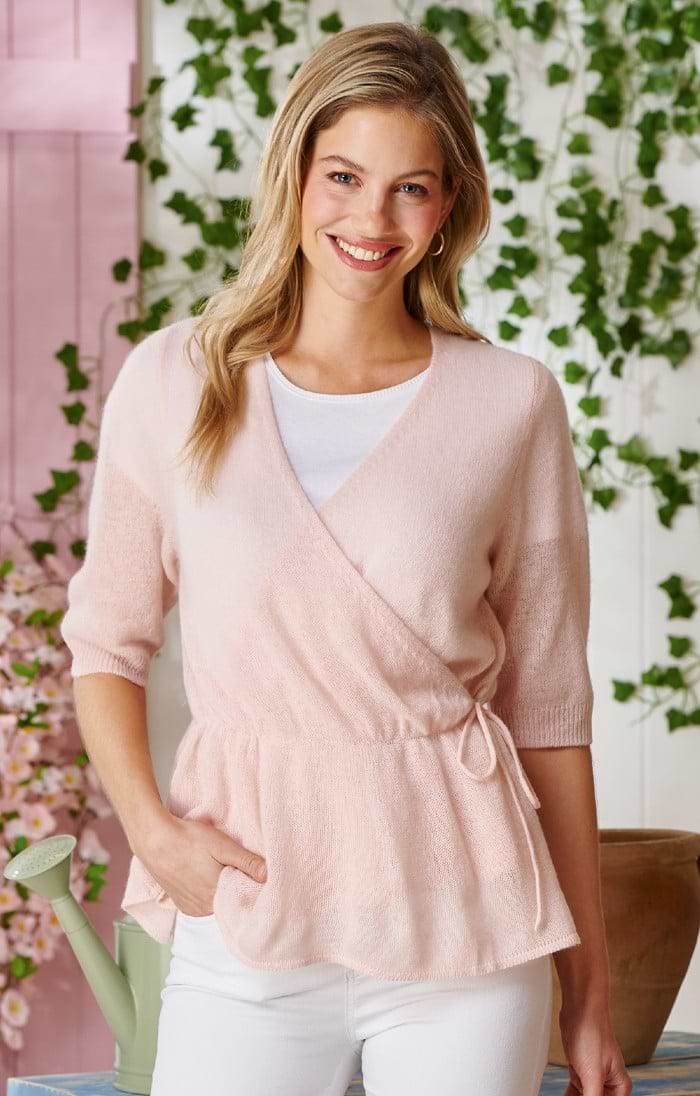 Wrap style knitted top in pure cashmereGathered waist with tie featureFloaty ruffles over hipsHalf sleeves with ribbed edgeGauzy semi-sheer knit perfect for layeringDesigned by The House of BruarLayer over a crisp white shirt and your favourite chinos and jeans for lunch with girlfriends, or over a cami top and your favourite necklace for an evening dinner look – the options are endless.