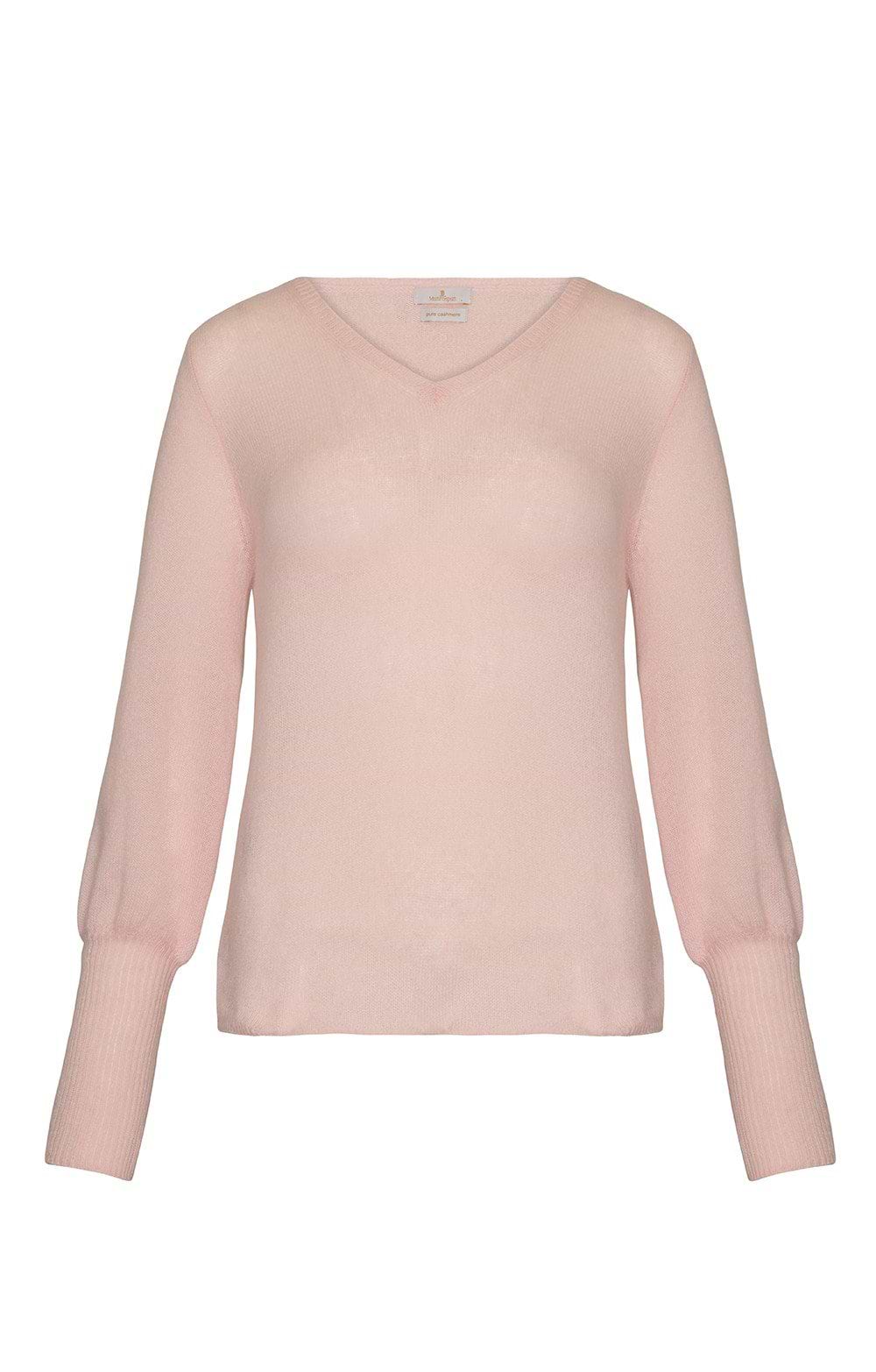 Ladies Gauzy Cashmere Balloon Sleeve V Neck