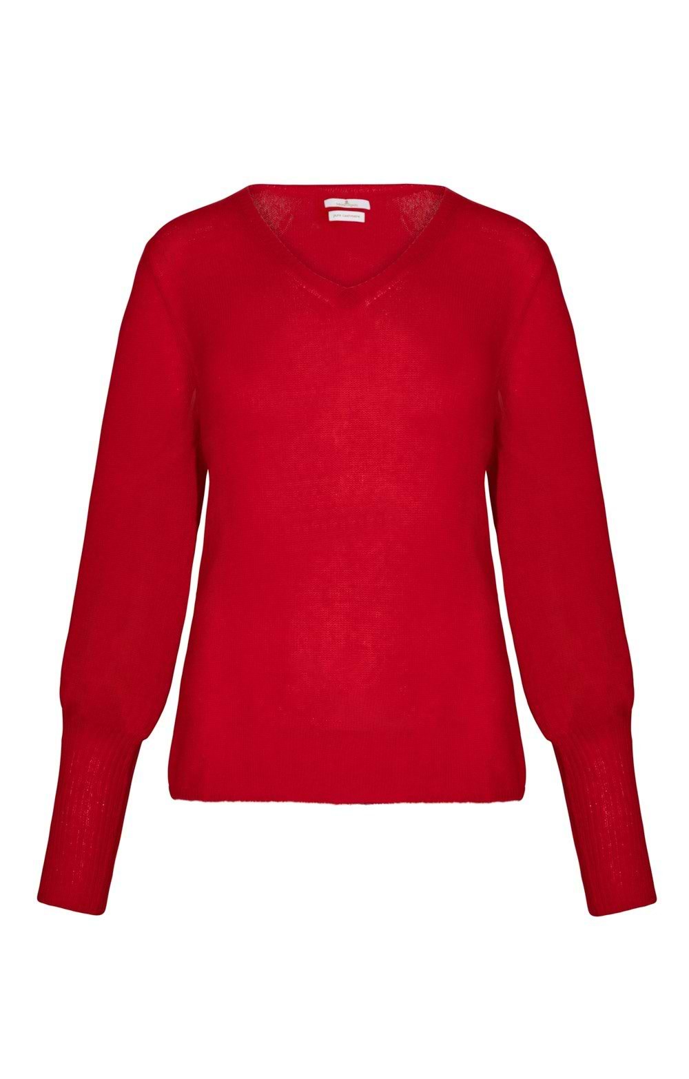 Ladies Gauzy Cashmere Balloon Sleeve V Neck
