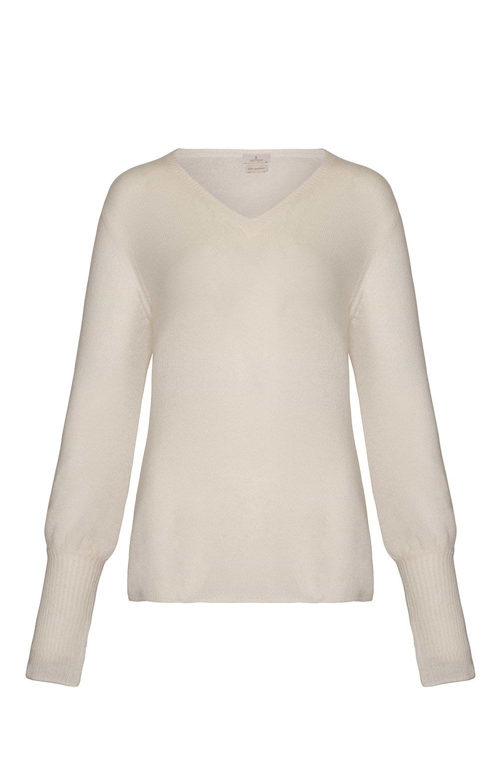 Ladies Gauzy Cashmere Balloon Sleeve V Neck