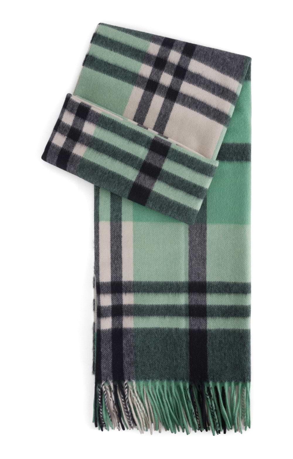 Premium cashmere wrapDistinctive three-colour block check designRipple finish for added textureDimensions: 70 x 190cm (excluding fringe)Fringe detailing for a refined finishPair with a cashmere sweater and tailored trousers for casual elegance, or drape over a sleek evening dress for added sophistication at formal events.