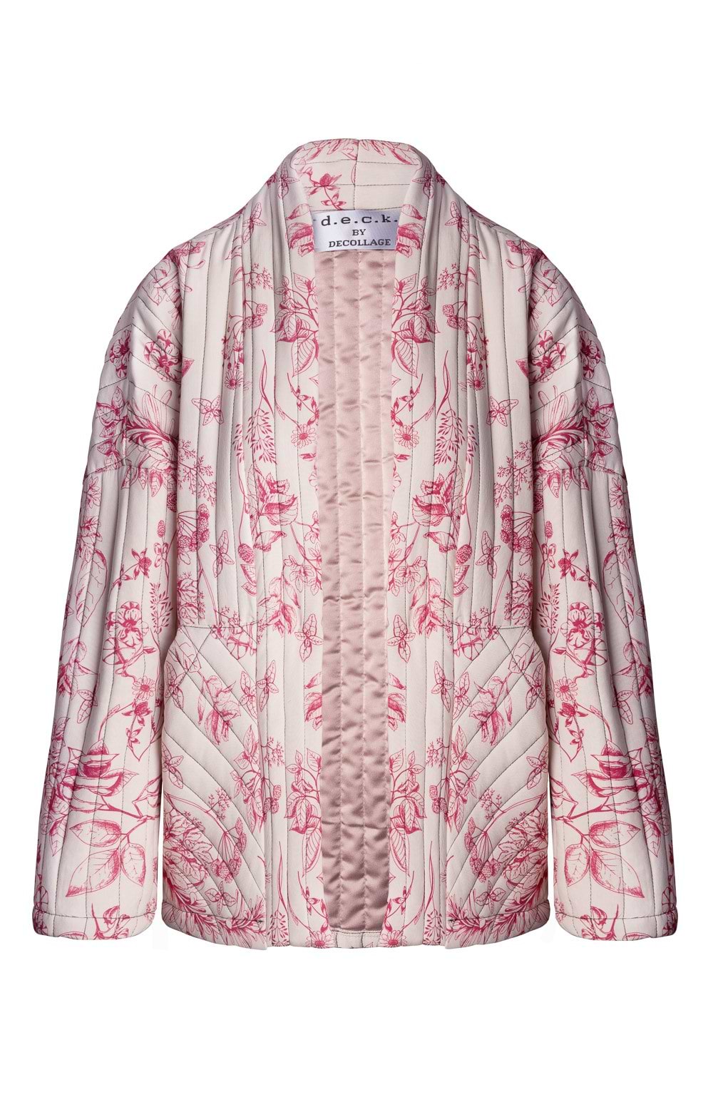 Ladies Damask Print Quilted Edge-to-Edge Jacket