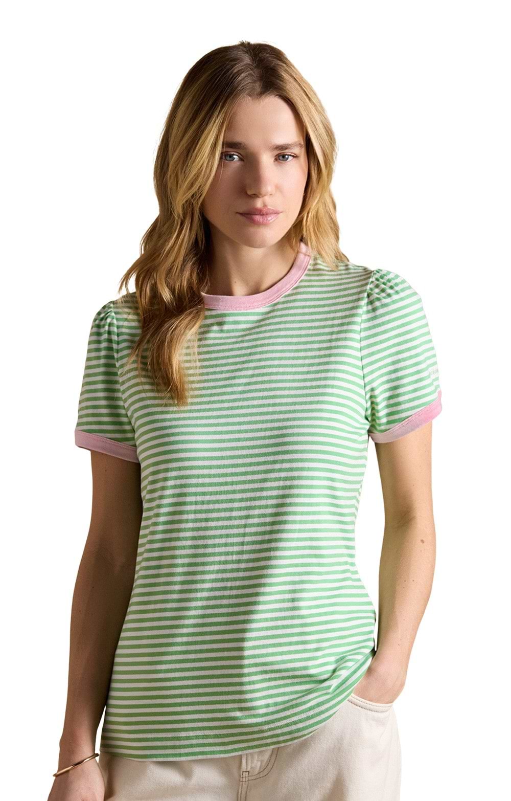 A basic striped design meets feminine gathered sleeves in this ladies Joules Erin short sleeve t-shirt.