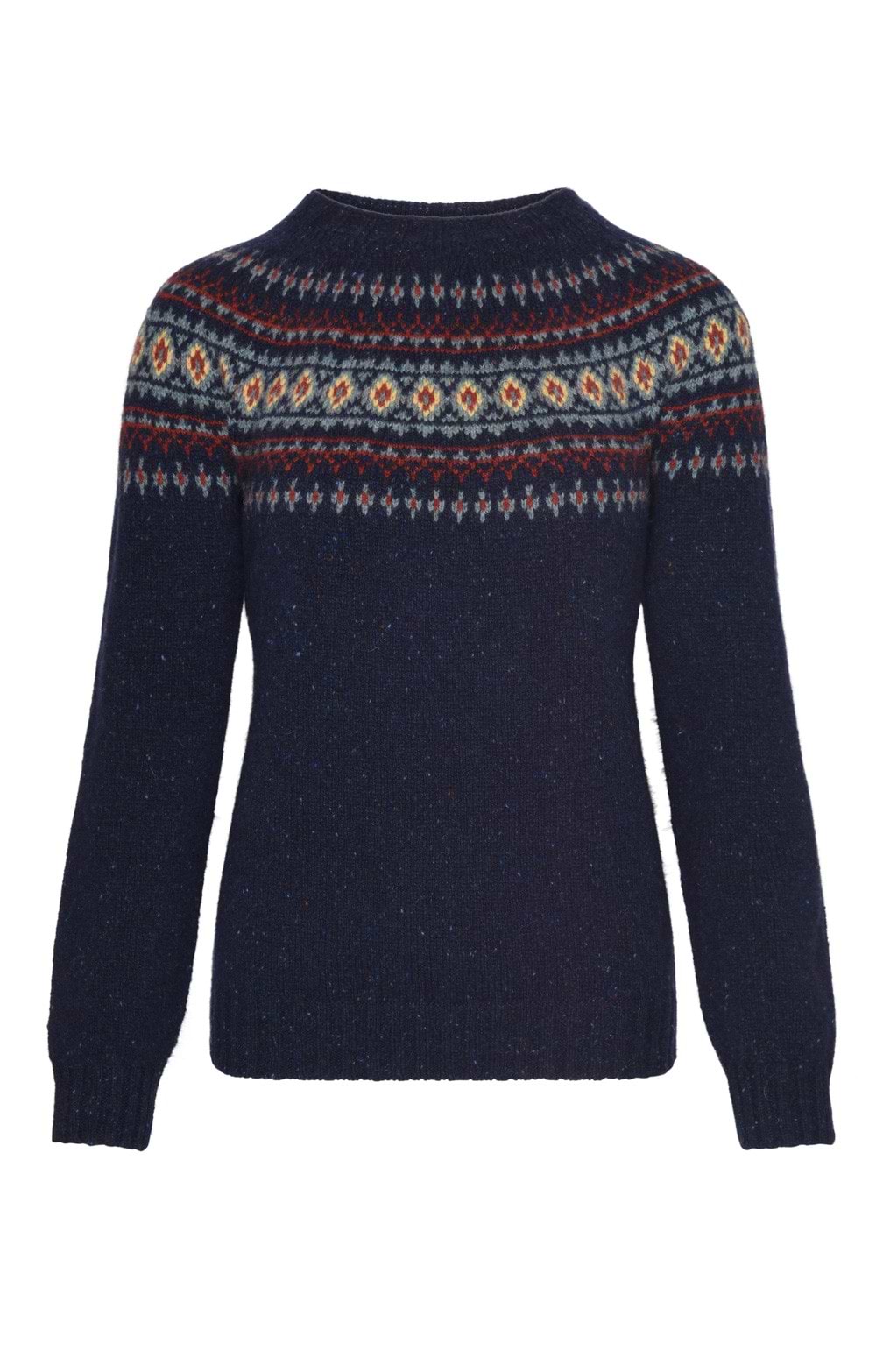 Scottish knitted jumper in soft flecked lambswoolFairisle designRelaxed fitRelaxed double-ribbed necklineEnjoy wearing this wonderful jumper with your favourite moleskin jeans, cord skirts or denims, adding leather boots and a tweed jacket for a covetable country look.