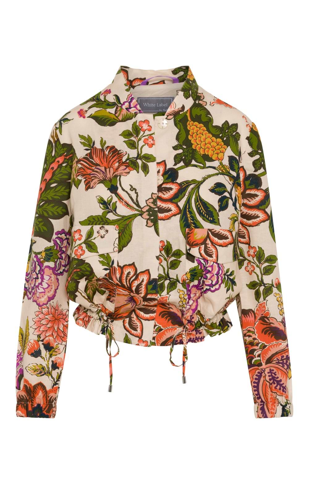 Ladies Linen Cotton Blend Floral Bomber Jacket