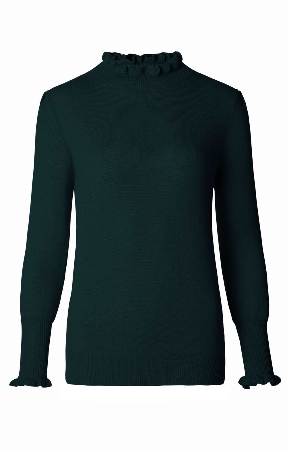 Ruffled crew collar and cuffsMedium-to-longline jumperLong bell sleevesDesigned by The House of BruarTeam with velvet or tartan trousers for a great evening look, or a tweed skirt or wool mix trousers for smart-casual daytime dressing.