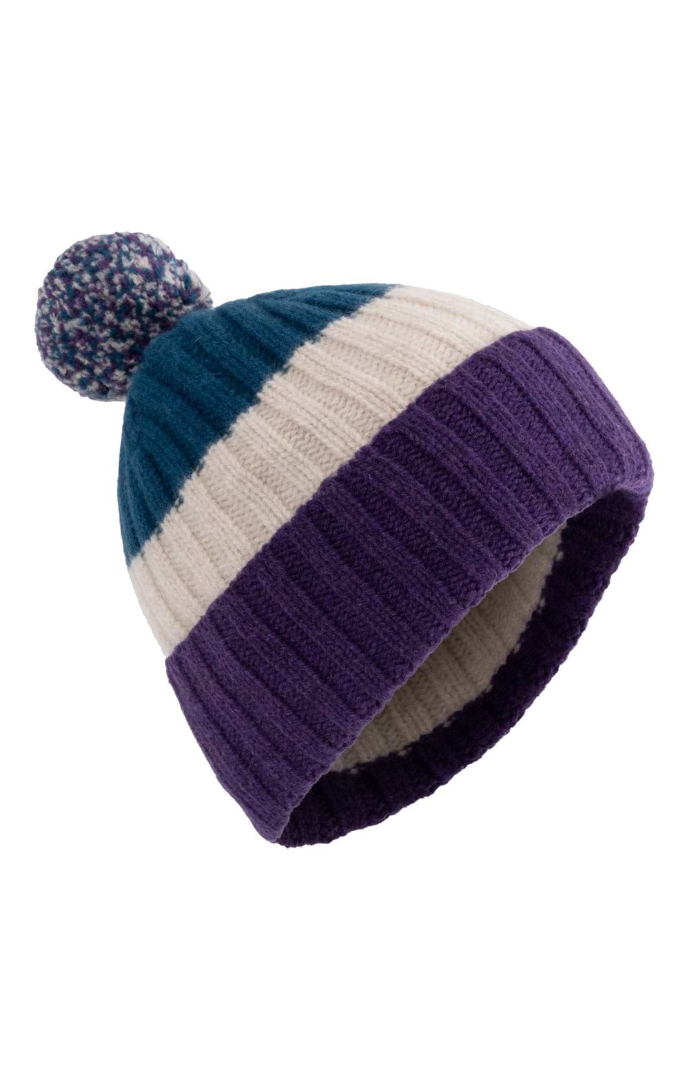 Crafted from luxuriously soft lambswool, this cosy hat features an all-over ribbed knit that provides a snug, flattering fit. The bold block-colour design adds a modern twist, while the cheerful pompom at the top brings a fun, characterful touch that's perfect for brightening chilly days.