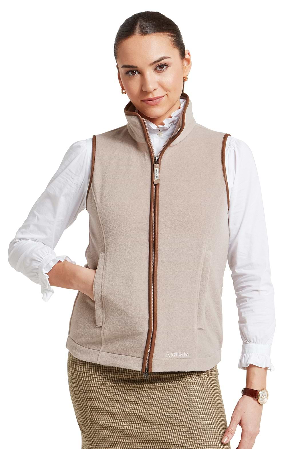 Practical country fleece bodywarmerZip fasteningSecure zip pocketsSuede-look trim around the zip, collar and arm holesStand collarAdjustable drawcord flatters the waistSchöffel branding to zip pull and lower hemTeam with jeans or jodhpurs and a country shirt for a confident country-inspired outfit that will also look great in town.