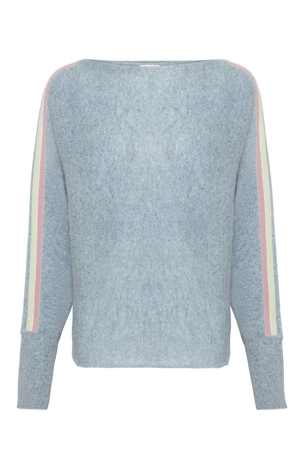 100% cashmereDolman sleevesOne centimetre rib on bottom Two centimetre rib on cuffFour coloured stripes down sleeveWhether you're out for a country walk or brunching with friends, this versatile sweater is the perfect choice.