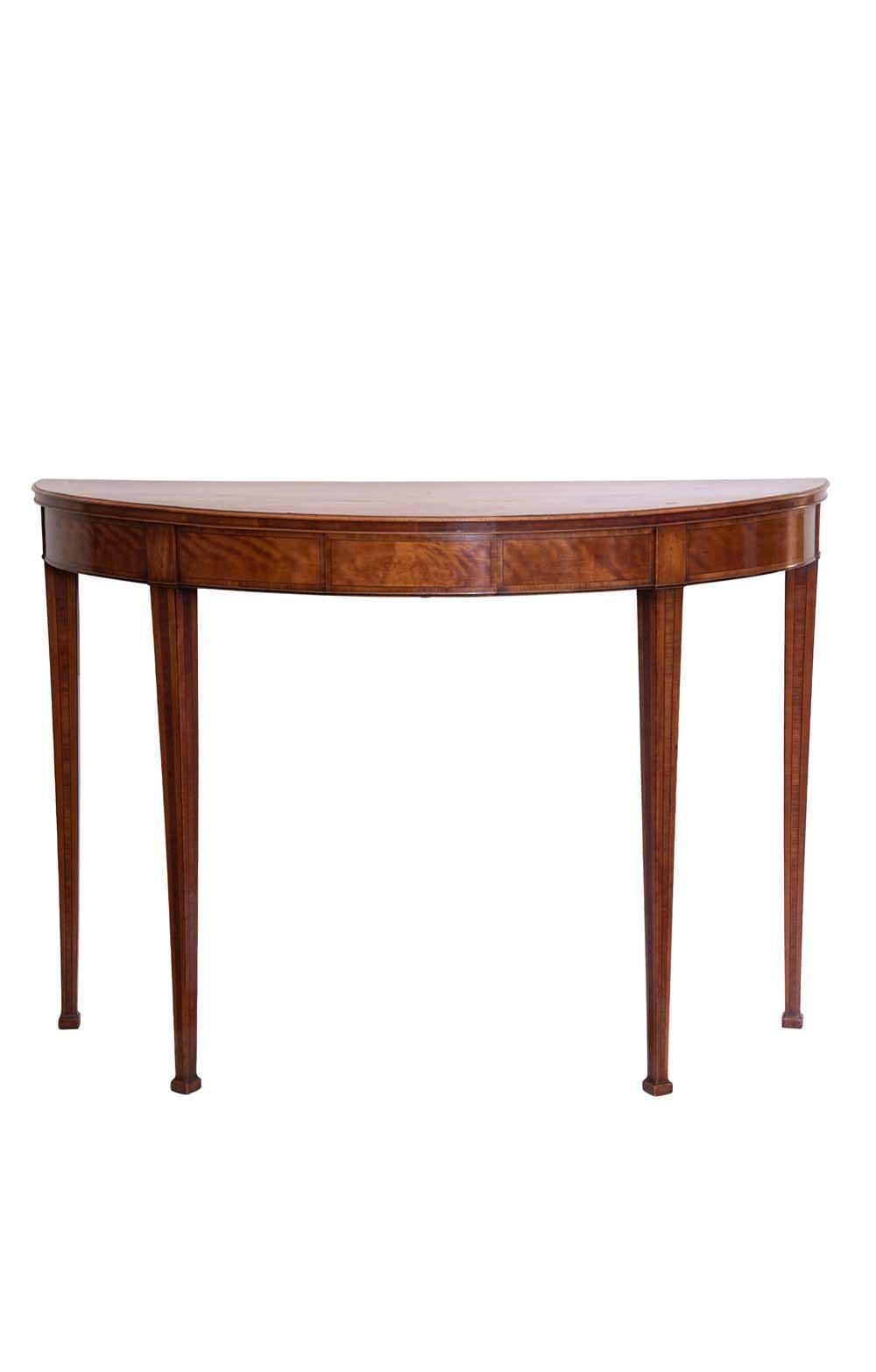 Large George III Satinwood Kingwood and Fruitwood Demilune Pier Table, Late 18th Century