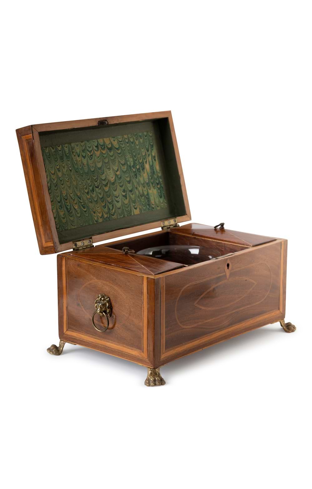 Late George III Mahogany and Boxwood Tea Caddy, Late 18th/Early 19th Century
