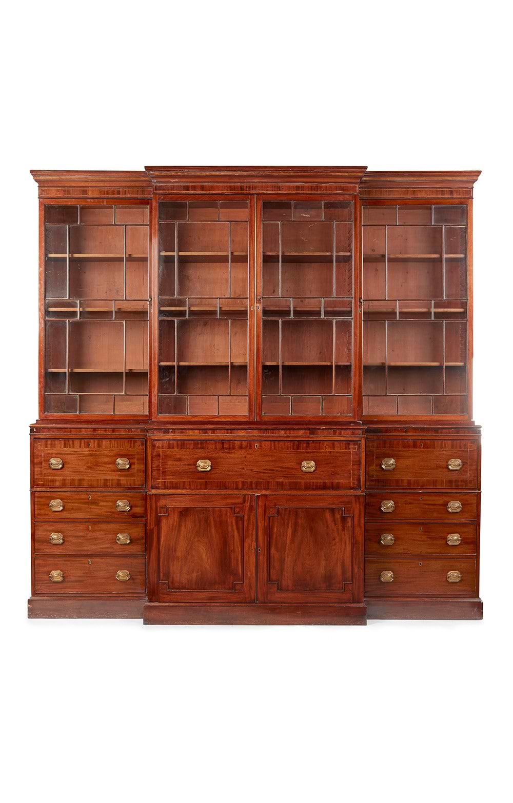 Late George III Mahogany Breakfront Secretaire Bookcase, Early 19th Century