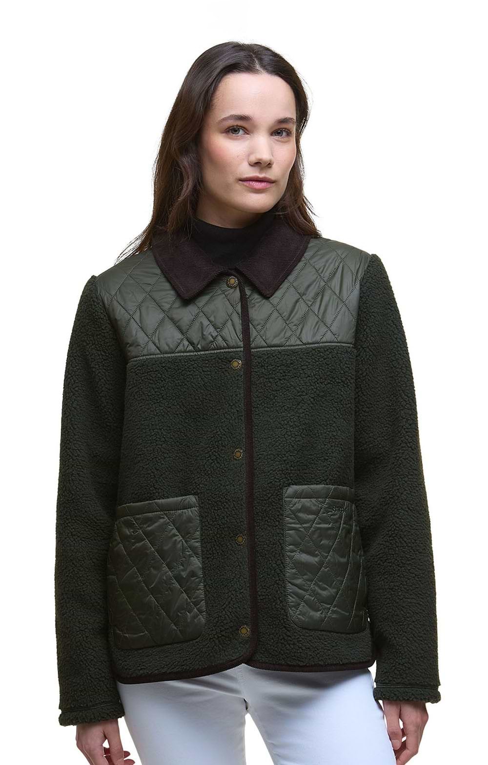The ladies Barbour Laurel fleece features super-soft faux fur construction with sophisticated corduroy trim and quilted diamond pockets.