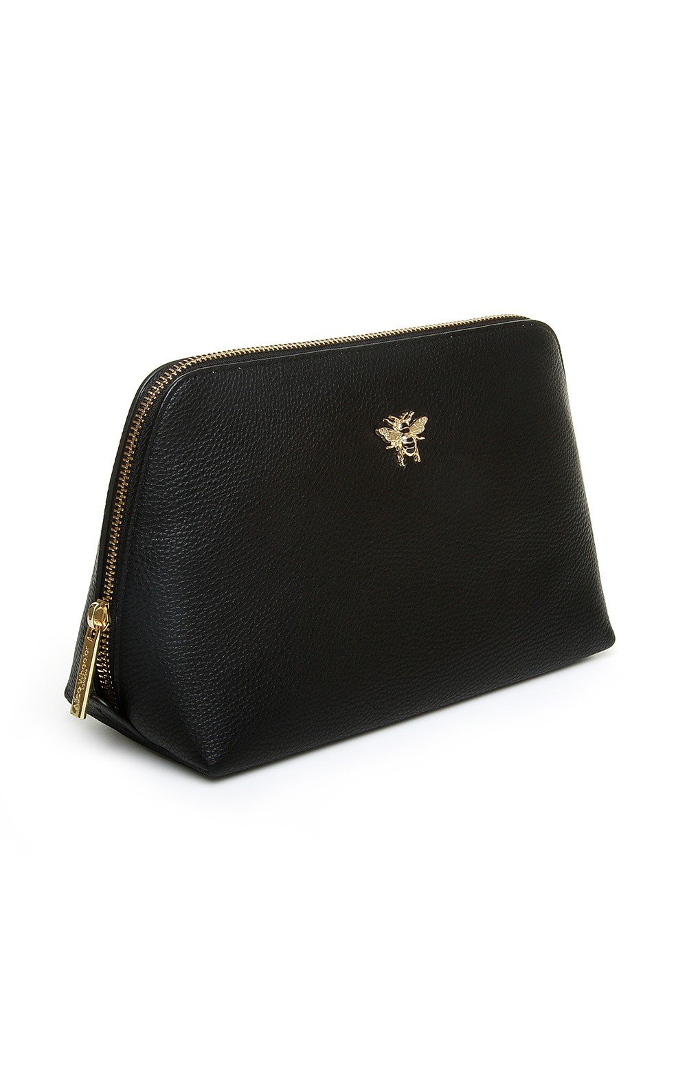 High quality PU leather with a grain finish gives a smart sheen to this luxurious accessory, which is fastened by a high quality gold-tone zip. With a generous main compartment, the fully lined bag includes two internal pockets for keeping everything in its place. Alice Wheeler's signature bee logo in gold-tone proudly adorns the front of this bag, enhancing its gift potential.