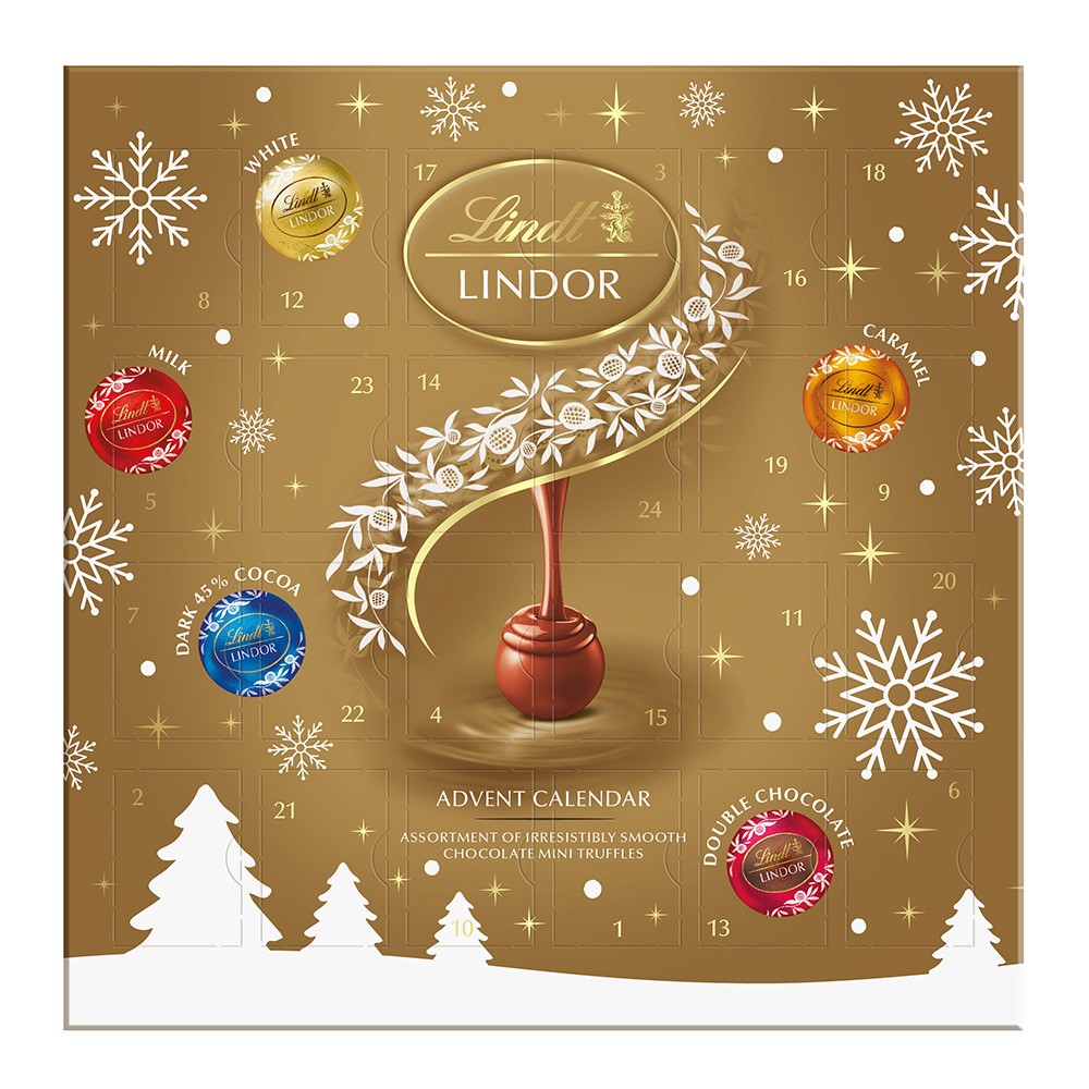 Lindor Milk Chocolate Truffles: sugar, vegetable fat (coconut, palm kernel), cocoa butter, cocoa mass, whole milk powder, skimmed milk powder, lactose, anhydrous milk fat, emulsifier (soya lecithin), barley malt extract, flavourings.May contain hazelnuts and other nuts. Milk chocolate contains: Cocoa solids: 32% minimum, Milk solids: 21% minimum.