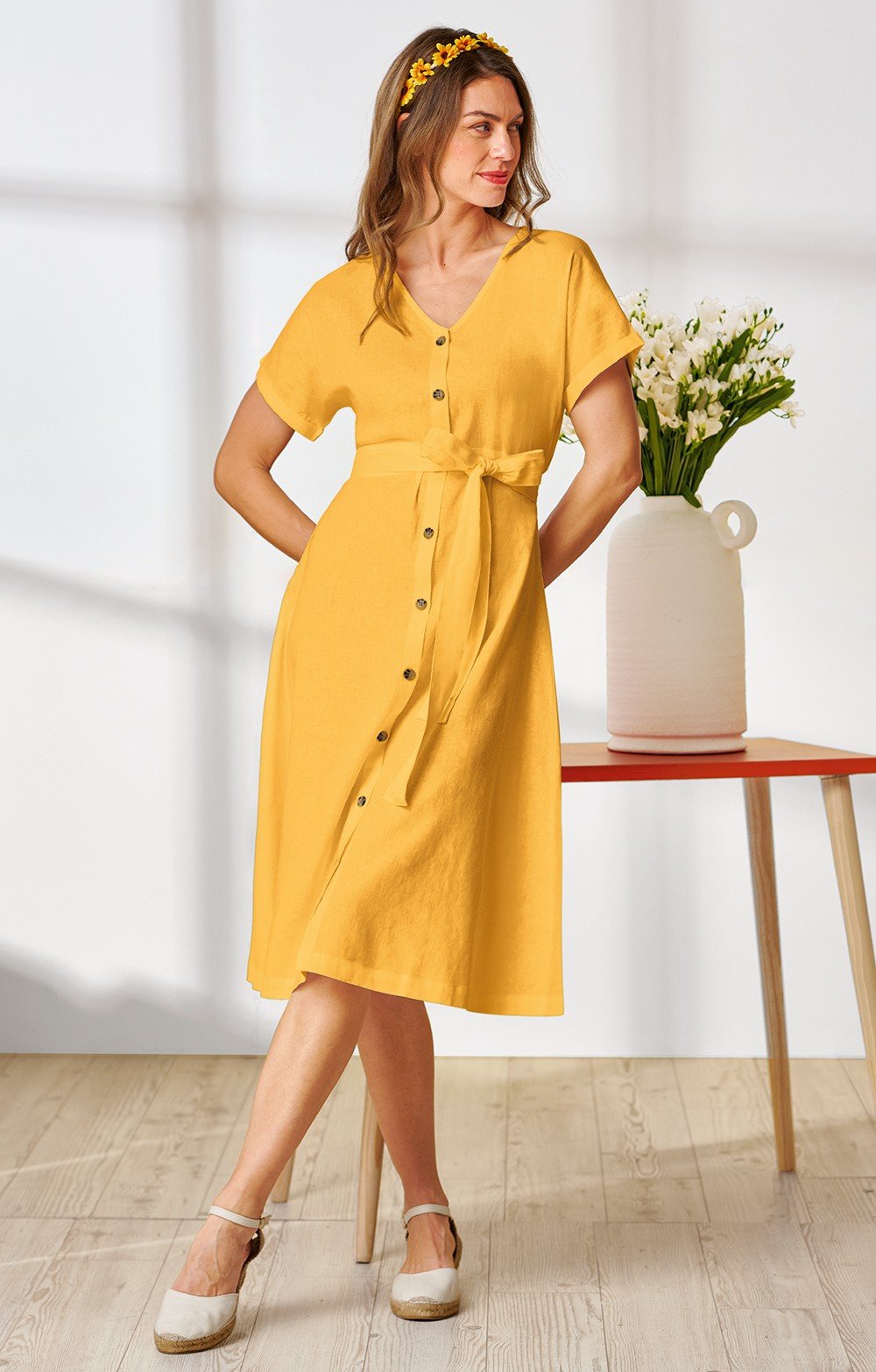 Ladies Linen Mix Button Front Dress