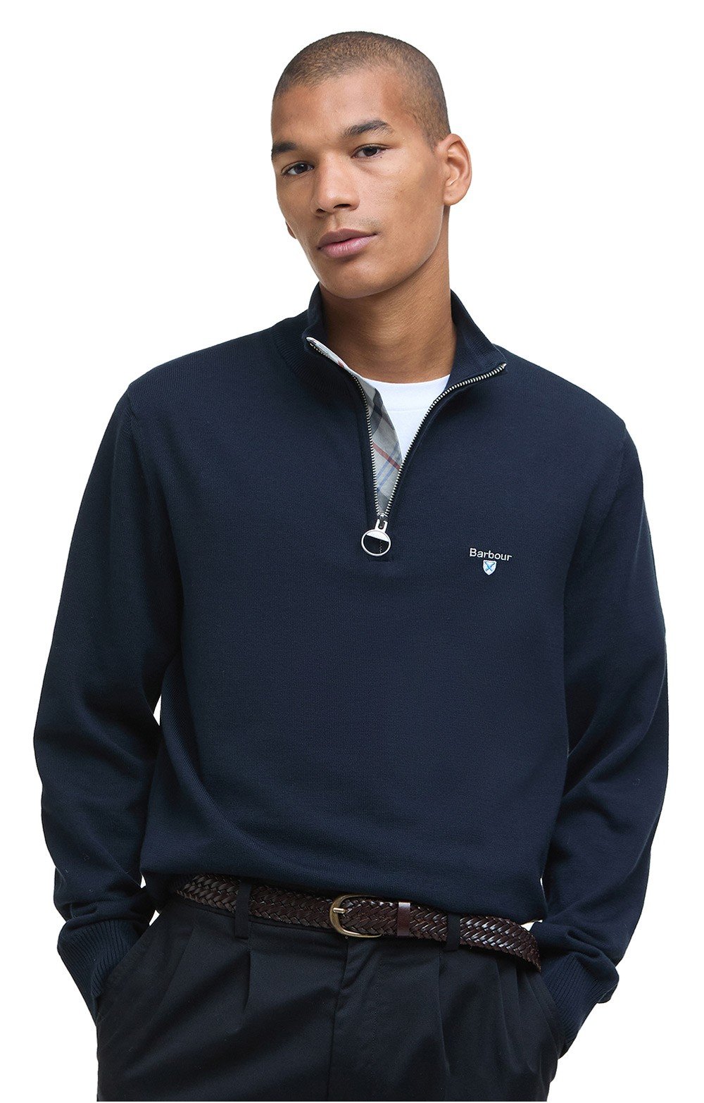 Finely knitted T-zip jumperStand collarZip lining in Barbour tartanBarbour branded zip pullEmbroidered Barbour branding to chestTeam with jeans and tennis shoes for an easy weekend look, or tuck into twill trousers and wear over an Oxford shirt for a modern work look.