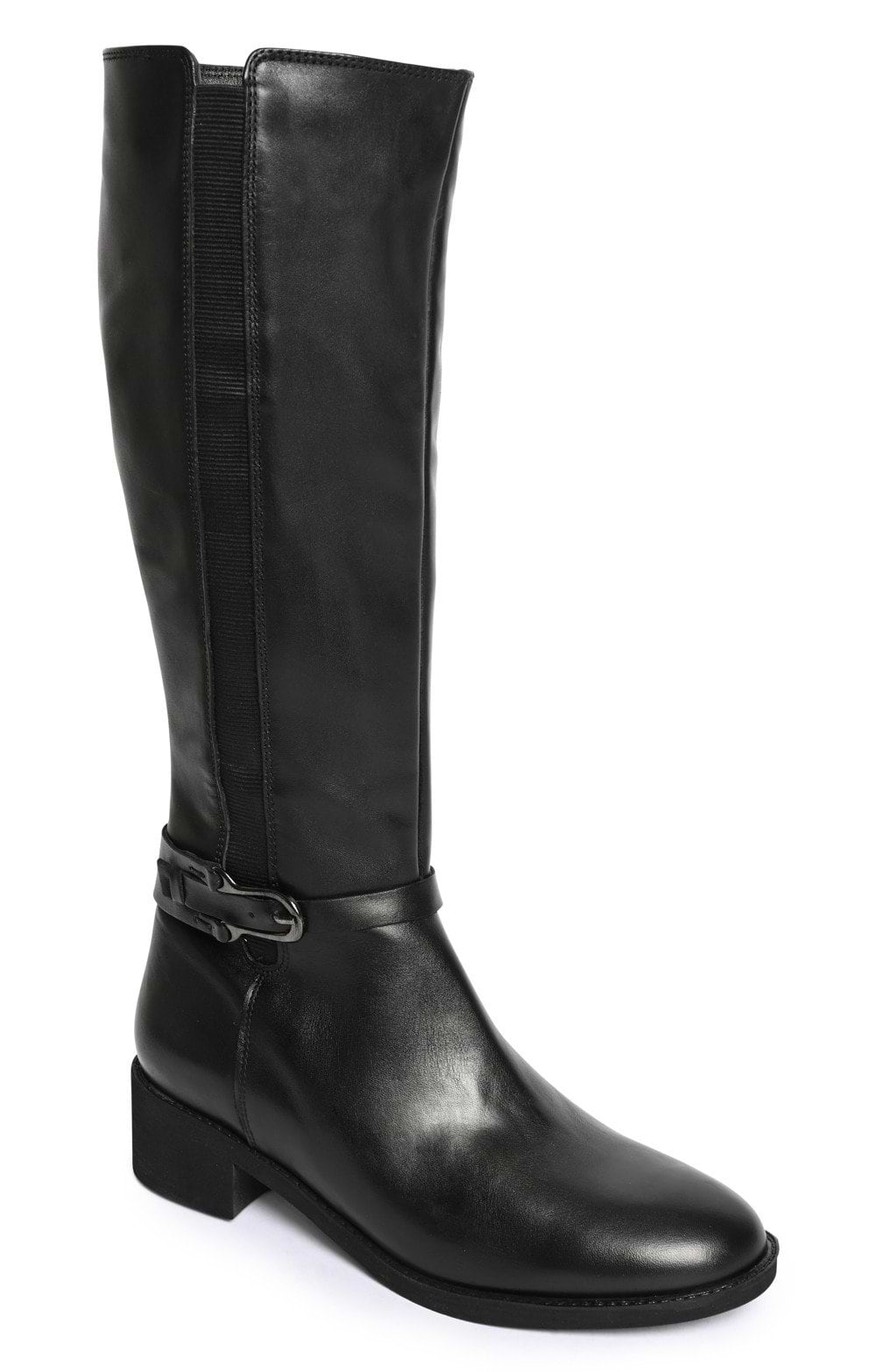 Ladies Tall Elasticated Leather Boots with Ankle Buckle