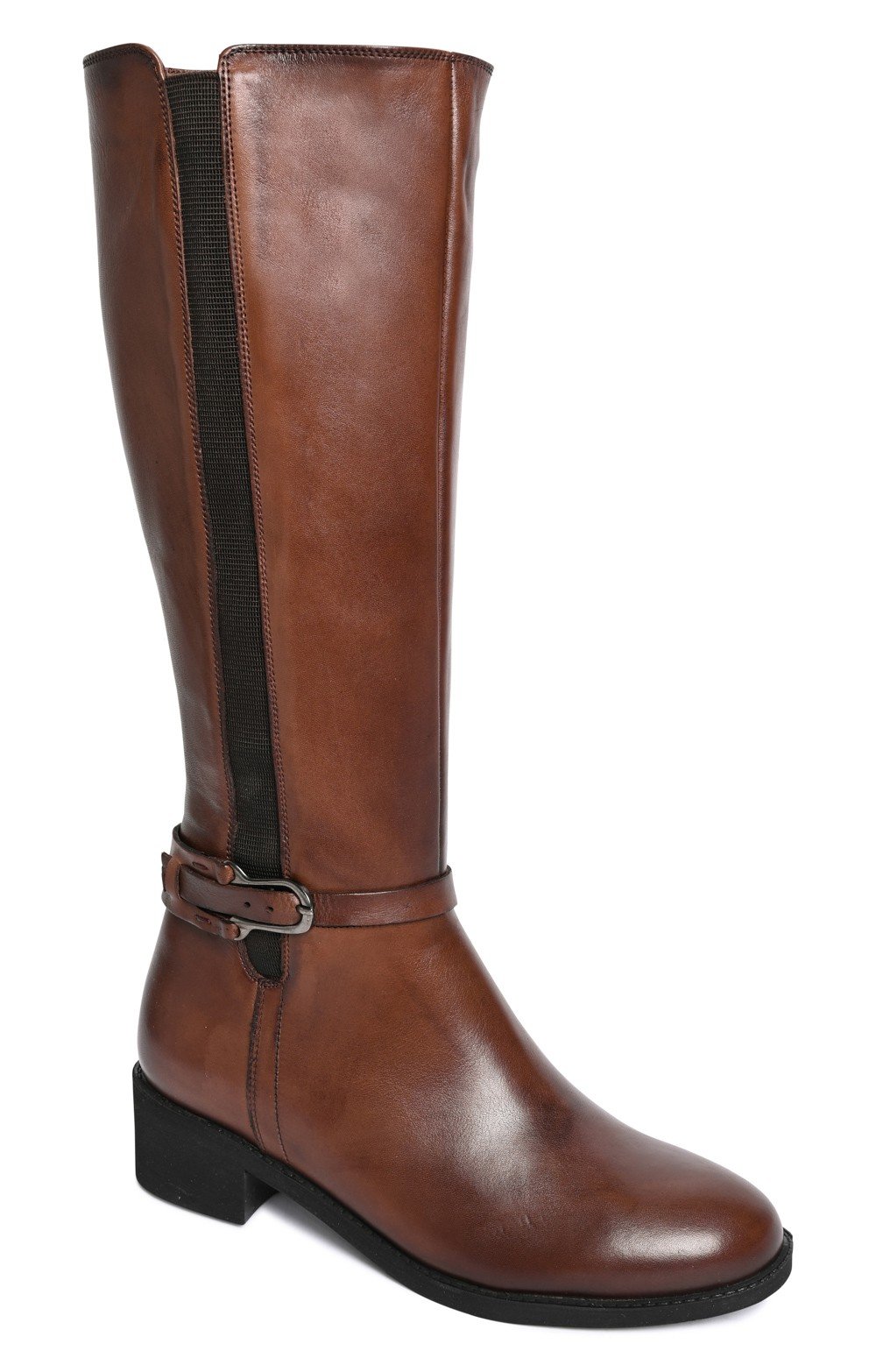 Ladies Tall Elasticated Leather Boots with Ankle Buckle