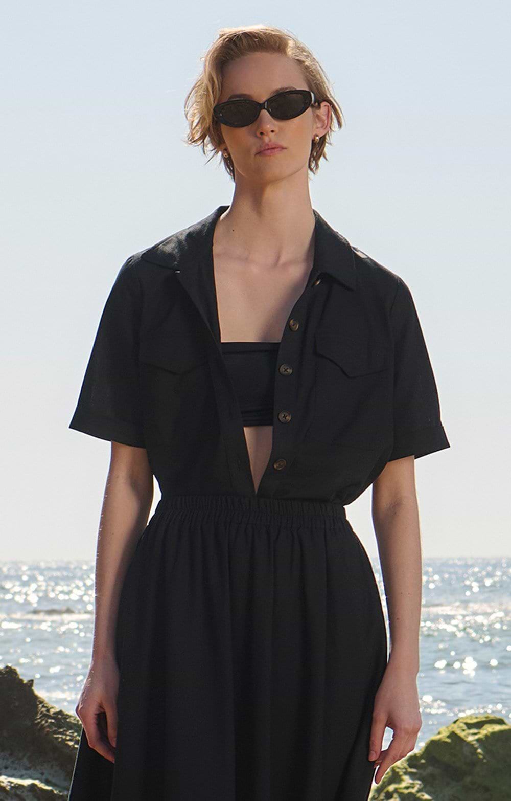 Fresh, modern and elegantly simple, the ladies Barbour Luna short-sleeved cotton and linen shirt will keep you looking smart throughout the summer.