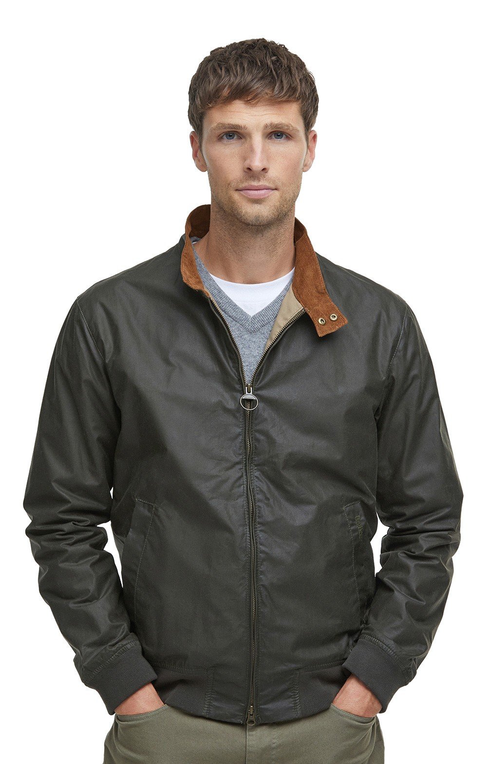 Waxed cotton outerCorduroy collarPress-stud and zip front closureTwo spacious utility pocketsAdjustable rear hemPair with rugged jeans and boots for outdoor activities or style with smart chinos for a polished, relaxed look.
